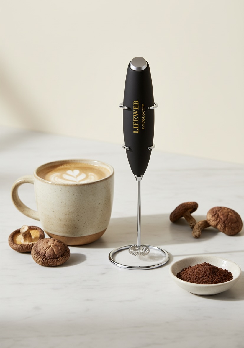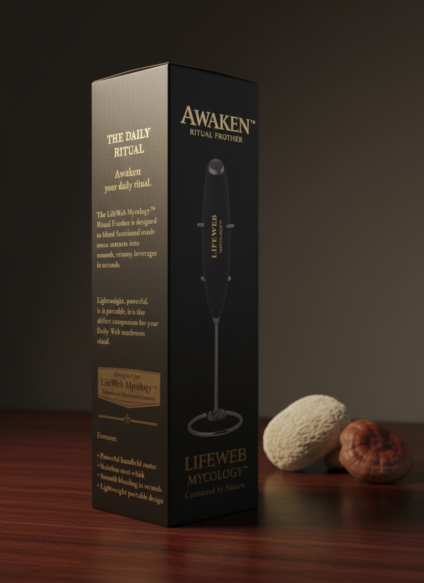 The LifeWeb Ritual Frother makes it easy to blend mushroom extracts, coffee, and tonics into a smooth, well-mixed drink in seconds. This compact handheld frother quickly dissolves powders and creates a light, silky texture without clumps or settling. Designed for daily use, it helps turn your morning mushroom routine into a simple ritual. Whether you’re mixing extracts, coffee, or your ginger citrus tonic, the Ritual Frother ensures everything blends evenly so each cup is smooth, balanced, and ready to enjoy.